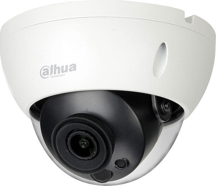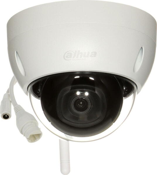 Dahua IP kamera. 2 Mpx-es, kültéri, dome, 3,6 mm fix objektív, IK10, microSD, Wi-Fi Dahua 2 megapixeles felbontású, kültéri, dome IP kamera A kamera fix objektívjének fókusztávolsága: 3,6 mm. Beállítási módja: fix fókusz, látószöge: 86°. A készülék IP67 védettségű és IK10 vandálbiztos kialakítású. A beépített infravörös megvilágítás típusa: IR LED, Smart IR.