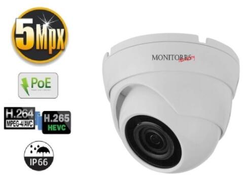 5MPix kültéri IP kamera 1/2.5" High-resolution CMOS Sensor H. 264, H. 265 , H. 265+, JPEG, AVI, MJPEG 3,6 mm-es fix objektív, 87 fokos látószög IR Éjszakai látótávolság max. 25 m IP67 kültéri védelem Beépített PoE (Power over Ethernet) technológia - a kamera tápellátása ethernet kábelen keresztül történik, így elég egy kábel a kamera jelének és áramellátásának átv