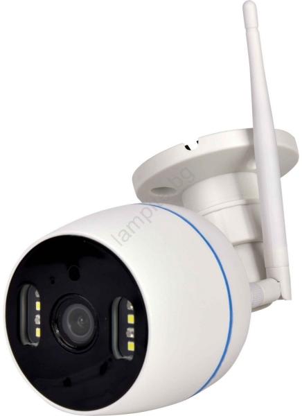 SMART KÜLSŐ STATIKUS KAMERA. Beltéri és kültéri terek megfigyelésére és őrzésére szolgál. Por- és vízálló kivitel (IP66). Felbontás 1920 x 1080 px (2 MP). Érzékelő típusa - CMOS - & nbsp; videotömörítés - H. 264. 90 ° -os érzékelési szög. Manuális forgatás 360 ° -kal vízszintes irányban és 80 ° -kal függőleges irányban. Beépített hangszóró és mikro