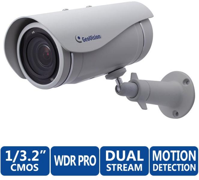 GeoVision 2,0 Mpixel IP ultra bulet kültéri kamera fix objektívvel (4 mm), 4 db IR LED (10m), hardveres D&N, WDR, Intell. IR Led megvilágítás, Progressive scan CMOS chip, 0,15lux/F1,6, H. 264/MPEG-4/MJPEG, max. 1920x1080 felbontás, max. 30fps képfrissítés, digitális I/O, micro SDHC kártyahely, privát zónák, 10/100 Ethernet, méretek 124x65x69mm, IP67, 5V DC/PoE