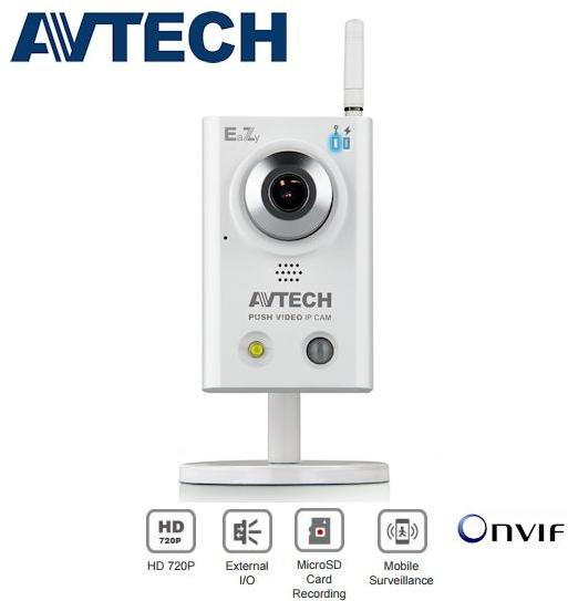 AVTECH 1.3 megapixel HD PUSH VIDEO IP kamera, WLAN (WiFi), 1/4'' SONY CMOS érzékelő, SXGA, 720P, VGA, QVGA felbontás, H. 264 / MPEG4 / MJPEG hálózati tömörítés, többszörös videofolyam, 0.1 Lux / F1.5 (0 Lux fehér LED be) minimális megvilágítás, 1 / 2 - 1 / 10,000 mp. zársebesség, f3.8mm / F1.5 lencse, 62.7°(átlós) / 53.7° (vízszintes) / 34.1° (függőleges) látószög, A