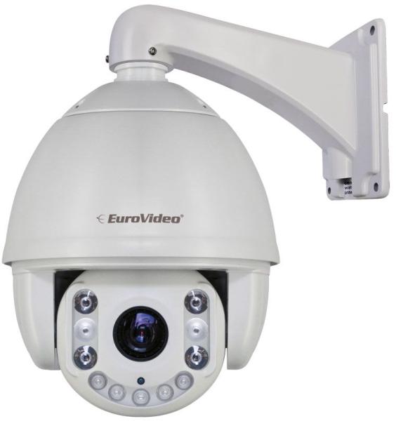 EuroVideo IP speed dome kamera, 1/3" CMOS, 20x optikai zoom (4,7-94 mm), ICR, 100 m IR távolság, H. 264/H. 265 tömörítés, 220 preset pont, ONVIF kompatibilitás, "túlbillentés" (0°-93°), IP66, 12 VDC/4 A, oldalfali konzollal és tápegységgel Általános adatokKépérzékelő szenzor1/3" CMOS (2688x1520)Optikai zoom20X (4,7-94 mm)Digitális zoom12xMaximális felbontás4 MPKimenetDual st