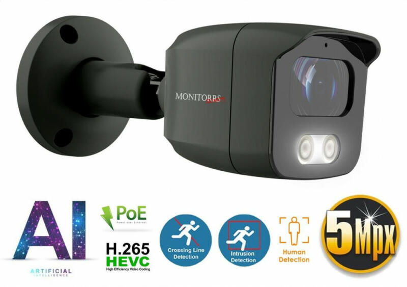 AI IP 5Mpix 2616 (H) * 1964 (V) kültéri csőkamera 1/2.8" Sony Starvis háttérvilágítású CMOS SmartSens lencse H. 264/H. 264+/H. 265/H. 265+ Compression Method 2,8 mm-es fix objektív, 105 fokos látószög IR Éjszakai látótávolság max. 30m IP67 kültéri védelem A kamera antracit (sötétszürke) színű Új generációs kamerák intelligens funkciókkal, mint az emberészlelés, a k