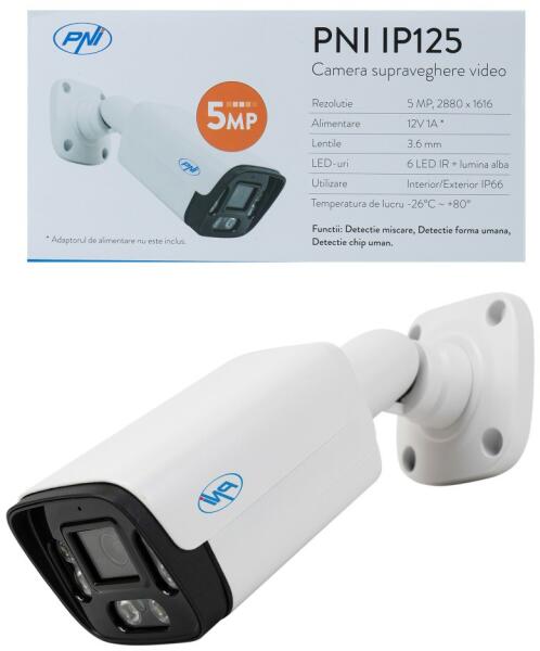 5.0 Megapixeles SuperHD felbontás, 6db fehér extra erős led fény a színes éjszakai képhez, valamint Infra ledek, ha fekete fehérben kíván rögzíteni. 5 MP felbontás (2880 x 1616 képpont) Tisztaság, részletek, természetes színek, kontraszt, fényerő. Ezek a PNI IP125 kamera 5 MP-es képei, egy 6 LED-del felszerelt kültéri kamera (IP66), amely infravörös és fehér fényt is ge
