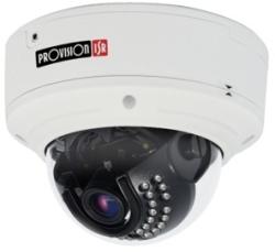 PROVISION-ISR Dark-Sight inframegvilágítós kültéri vandálbiztos 3 megapixeles IP dome kamera, 2048x1536/1920x1080/1280x960/1280x720 felbontás valós időben (30fps), H. 264/H. 265 tömörítés, ONVIF, 1/2,8 Sony CMOS képérzékelő, 3-11 mm varifokális lencse, mechanikus Day&Night, minimális megvilágítás 0 Lux (IR be), megvilágítási távolság 25 m, 30 db IR LED, digitális WD