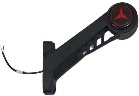Kamion logóval ellátott LED gumilámpa. Előre fehér, hátra piros, oldalra sárga fénnyel világít. Rendkívül impozáns, egyedi megjelenést biztosít. Hermetikusan zárt kivitel. Elhelyezés: jobb oldalra Feszültség: 24 V DC Magasság: 155 mm Kiállás oldalra: 180 mm Rögzítés furattávolsága: 80 mm
