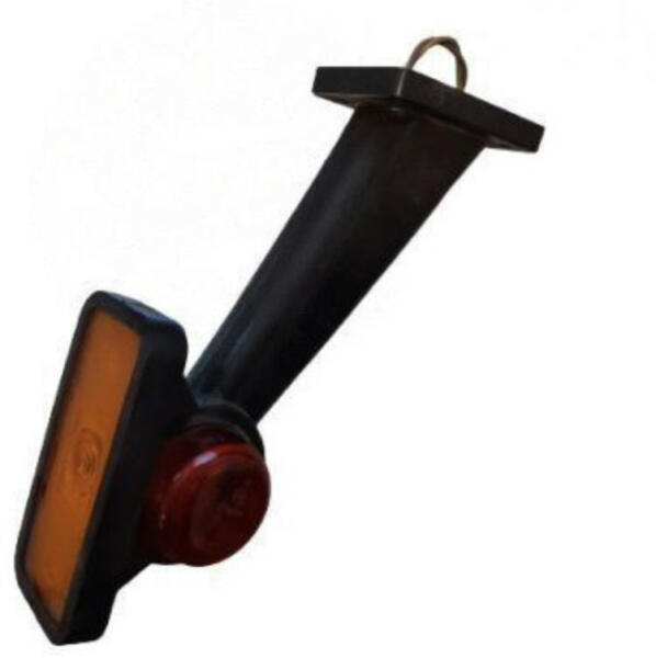 Izzós gumilámpa FERDE kivitelben. Piros, fehér és sárga fénnyel is világít. Prizmás sárga búrával. Mindkét oldalra felszerelhető. (A piros és a fehér búrák felcserélhetőek. ) Lefelé nyúló szerelési pozíció. Magasság: 21 cm Kiállás (oldalra): 17 cm Talp mérete: 84 x 48 mm Furattávolság: 62 x 30 mm (4 csavaros rögzítés) Minősítés: E20 közúti forgalomban haszn