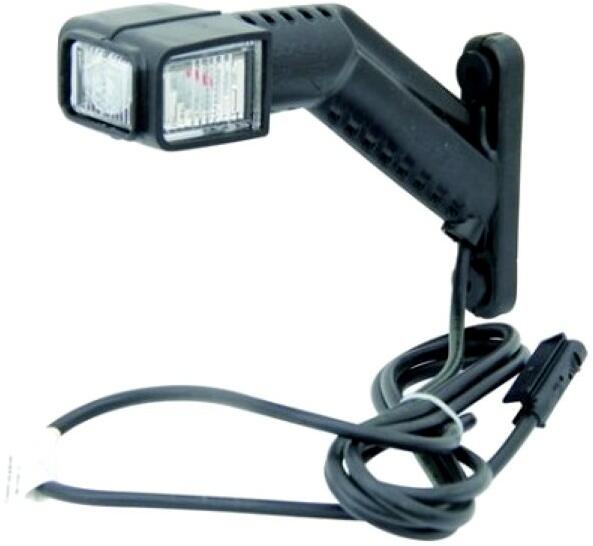 Ledes helyzetjelző gumilámpa oldalra. Háromszínű, előre fehér, hátra piros, oldalra sárga fénnyel világít. Dupla szigetelésű kábellel. Bal oldalra. Feszültség: 12 / 24 V DC Talp mérete: 104 x 24 mm Kinyúlás (oldalra): 175 mm Vezeték hossza: 200 cm Rögzítés furattávolsága: 80 mm A pontos méreteket lásd a műszaki rajzon! Minősítés: E9 6878 10R-05 6765 A 02, R1 02, SM1