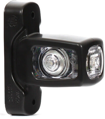 Termék részletekLedes helyzetjelző gumilámpa. Háromszínű, előre fehér, hátra piros, oldalra sárga fénnyel világít. Mindkét oldalra felszerelhető. 12 és 24 V-al is kompatibilis. Kb. 84 mm-es kinyúlással, 21 cm hosszú vezetékkel. Rögzítés csavartávolsága: 80 mm Minősítés: E20 (közúti forgalomban használható)