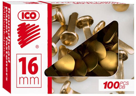 Milton kapocs ICO 442 16mm rezezett Réz bevonatú miltonkapocs. Alkalmazható dekorációs termékek készítéséhez, boríték lezárásához.