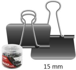 Bindercsipesz, 15 mm, fekete (INJ11167) - nagykereskedelmi kiszerelés (12 db/doboz) - fekete színben - méret: 15 mm - lapok gyors összefogását szolgáló iratcsipesz