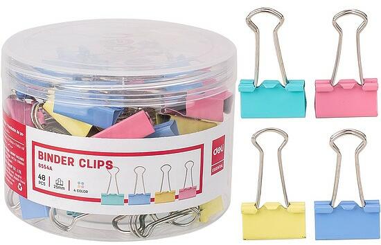 Iratcsipesz, fém, 25 mm, 48 darabos, DELI Vivid, vegyes színben.