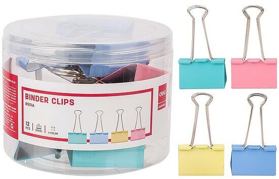 Iratcsipesz, fém, 51 mm, 12 darabos, DELI Vivid, vegyes színben.