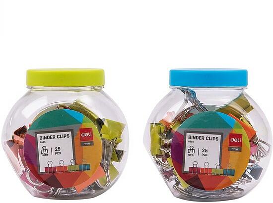 Színes bindercsipeszek műanyag tárolóban