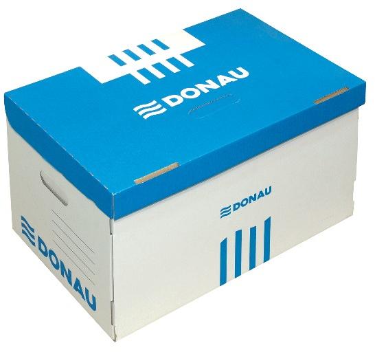 Archiváló doboz, A4, 100 mm, karton, Donau, kék - A4 méretű dokumentumok archiválására alkalmas - kapacitás: 1000 lap - összehajtható, egyszerűen összeszerelhető - feliratozható - 10 cm gerincvastagság - a 340 mm-es magasság lehetővé teszi iratrendezők archiválását is - lapraszerelt