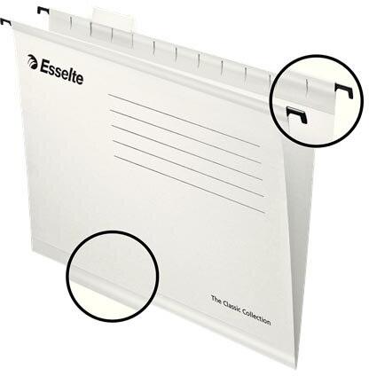 Esselte Classic Standard függőmappaKiemelkedően tartós, ragyogó színű függőmappa. Tízszer erősebb, mint előtte! JellemzőkA laminálással megerősített gerincnek és felfüggesztésnek köszönhetően tízszer erősebb!Ragyogó színek a könnyű, színalapú rendszerezéshezVíztiszta műanyag címketartóval és hozzá illő fehér címkével100%-ban újrahasznosított kartonból,