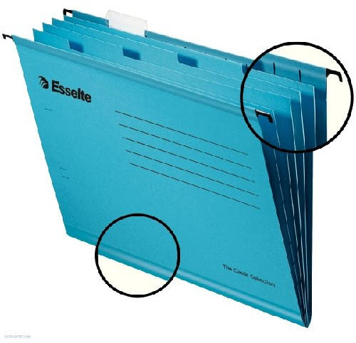 Kivételesen erős függőmappa 4 elválasztólappal a lapok rendszerezéséhez. Víztiszta műanyag címketartóval és hozzá illő fehér címkével. 100%-ban újrahasznosított kartonból. Blue Angel minősített. .