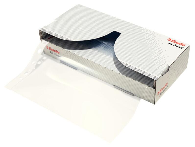 Esselte védőfólia adagoló, A4, kristály, 55 kicsi, doboz 40 db A rendszer hasonló a szalvétadobozokhoz, és lehetővé teszi a fóliák egyenkénti kioldását. Az adagoló bárhová elhelyezhető anélkül, hogy sok helyet foglalna: az asztalra, fiókba, a nyomtató fölé stb. A doboz vonzó dizájnnal rendelkezik, világos színekben, bármely iroda arculatának megfelelően. Jellemzők