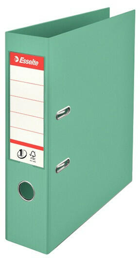 Iratrendező ESSELTE Colour`Ice Standard A/4 75 mm élvédős zöld Trendi Esselte iratrendező. Anyaga: habkönnyű Polifoam/PP. Tetszetős, jeges színvilág, különleges Colour’Ice tervezés. Dombornyomott mintázat. Kapacitás: 500db A4-es 80 gr-os lap. Standard, fém emelőkaros szerkezet. Öntapadós gerinccímke. Gumiszalagos záródás. 3 év garancia a szerkezetre FSC® minősített.