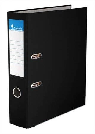 Termék neve: Iratrendező, 75mm, fekete Gyűjtőcsomagolás: raklap=600db, karton=25db Márka: VICTORIA Csomagolási egység: db Leírás: -> kiváló minőség, mindennapos használatra -> A4 méretű dokumentumok tárolására -> élvédő fémsín nélkül, a bútor megóvása érdekében -> kívül PVC borítás, belül karton -> 7 színváltozat -> cserélhető címke ->