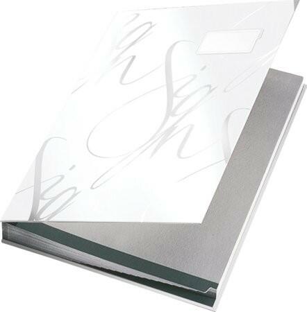 Aláírókönyv, A4, 18 részes, karton, Leitz Design, fehér - kiváló minőségű aláírókönyv szerződések, számlák és egyéb jóváhagyást igénylő dokumentumok rendszerezéséhez - egyedülálló megjelenés és friss színvilág a modern irodai környezet számára - elegáns megjelenés - selyemfényű, laminált borító a tartós használat érdekében - 18 merev elválasztólap