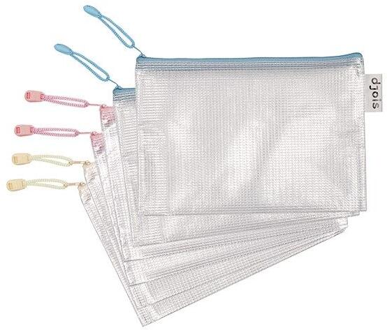 Rendkívül tartós, félig átlátszó, rugalmas hálóval erõsített, tartós PVC tasak vonzó, pasztell színekben. Dokumentumok, írószerek, apró tárgyak akár tematikus rendszerezésére is alkalmas. A fém cipzáron lévõ, színes zsinór megkönnyíti a használatot. Oldalán található, logós hurok toll tartására alkalmas. Formátuma: A5, külsõ mérete: 235 × 165 mm; tetején c