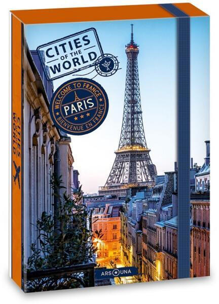 - Füzetbox - Párizs városa látható - Gumis zárral - A/5-ös méret - Kemény kartonból