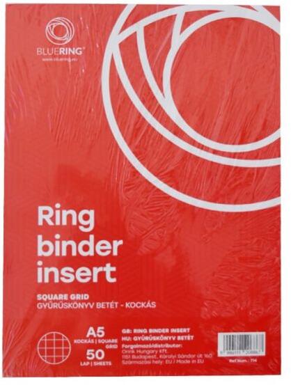A5 méretű szabványos lyukasztású 2gyűrűs gyűrűskönyvben használható 50lapot tartalmaz a csomag