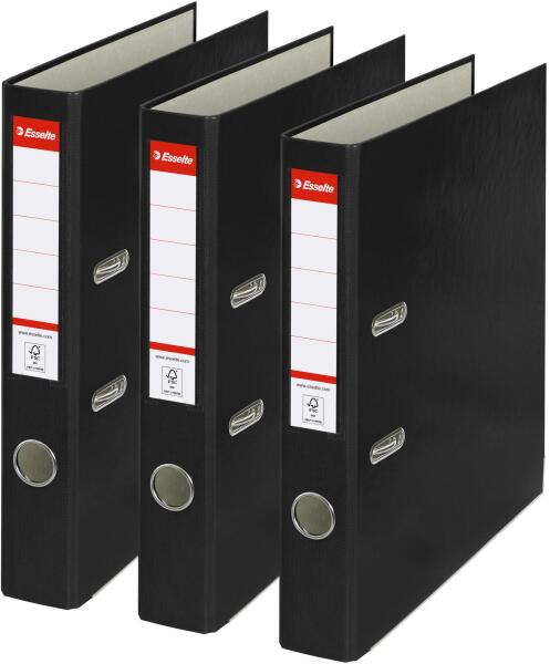 Esselte Economy könyvespolc készlet Szabványos mechanizmus A külső borítás polipropilénnel (PP), a belső pedig szürke papírral van bevonva. Gerinces zseb cserélhető kartoncímkével a személyre szabás érdekében. Fém rögzítő furattal, rado gyűrűkkel és fémsínnel védett élekkel felszerelve a könnyű és biztonságos kezelés érdekében. Kapacitás 500 A4-es lap (80 gsm)