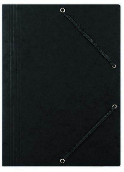 Kiváló minõségű prespán kartonból készített gumis mappa A4-es dokumentumokhoz. A tartalom - a mappával megegyezõ színben - a sarkak felett futó gumiszalagoknak-, valamint a 3 belsõ fülnek köszönhetõen biztonságosan rögzített. Anyaga: viasszal bevont prespán karton (390 g/m2).