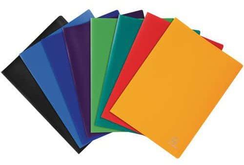 Puha fedeles katalóguskönyv könnyű textúrával. 15 db-os készlet. Különféle átlátszatlan színek: kék, sötétkék, sárga, fekete, piros, zöld, sötétzöld, lila.