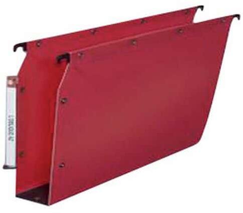 Lapos acél felfüggesztő rudak. Hátoldala polipropilén szalaggal megerősítve, 8/10-es hornyokkal a dokumentumok tárolására.