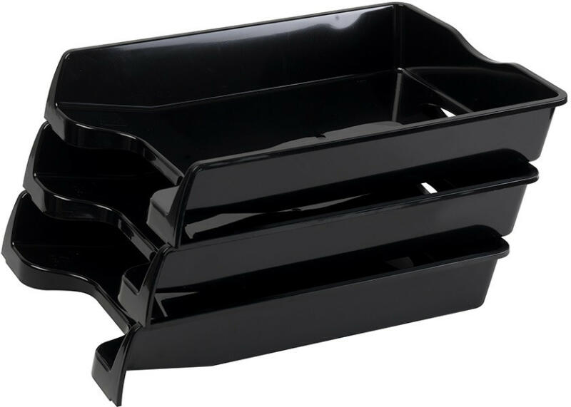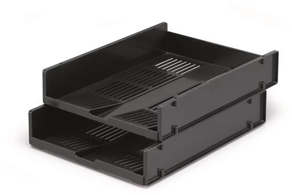 IRATTÁLCA MŰANYAG 355 FEKETE 355X255X60MM 36DB/KARTON. A4 méretű dokumentumok, papírok tárolására alkalmas egymásra helyezhető kiváló minőségű irattálca. Anyaga rugalmas műanyag, így nem törik, nem reped. Egymásba csúsztatható, így szállítás közben nem sérül, biztonságosan szállítható. Katalóguskód: 958