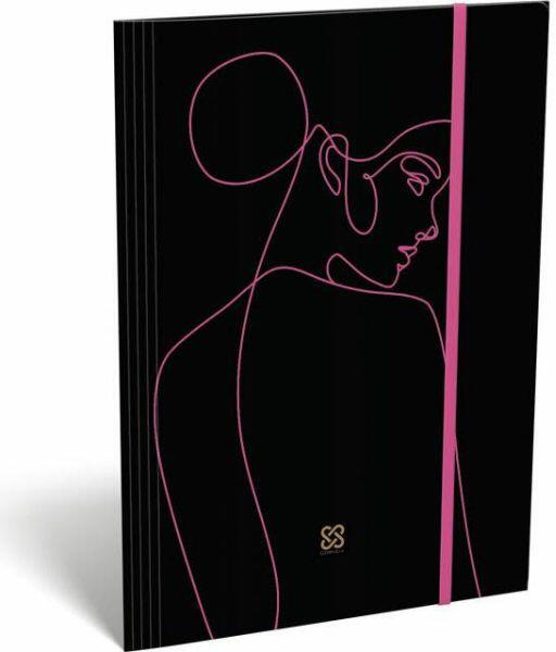 Elegáns, letisztult és trendi! A4-es méretű A4-es méretű gumis mappa lányoknak, hölgyeknek. Mérete: 32,8x0,4x23,5 cm. Szín: fekete, rózsaszín vonal minta. Minőségi Lizzy Card termék. A Cornell Pink Line fekete-rózsaszín színvilága biztosítja a kifinomult eleganciát. A kollekción a trendi egyvonalas rajzolt arc motívum köszön vissza. Letisztult vonalvezetés, divatos színe