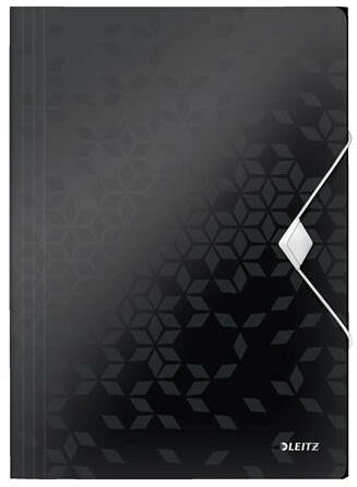 Gumis mappa, PP, A4, LEITZ "Wow", fekete - kiváló minőségű PP 3-pólyás mappa ragyogó WOW színekben - ideális a dokumentumok és különálló lapok mindennapos rendszerezéséhez - tetszetős gumiszalagos záródás a dokumentumok biztonságos szállításához - illik a "Wow Jumbo" gumis mappába, bármely standard iratpapucsba és irattálcába - ideális A4 méretű lapok, standard ge