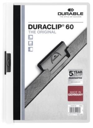 Az eredeti DURACLIP® mappa PVC-ből készült, speciális rugalmas acél klippel. Ideális prezentációk, iratok, ajánlatok, konferenciák / szemináriumok jegyzeteinek vagy riportoknak lyukasztás nélküli lefűzérésre. A DURACLIP® 60 kapacitása 60 db A4 lap. Áttetsző előlappal és színes hátlappal. További kiegészítők kaphatók. Saját logojával nyomtatva a DURACLIP® egy egyed