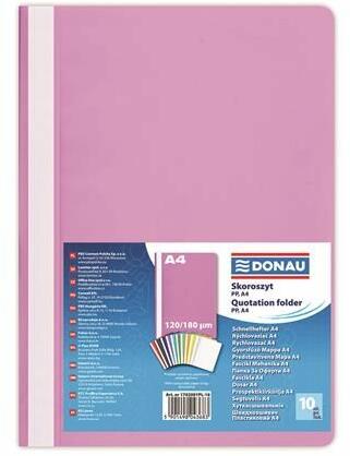 - A4 méretű dokumentumok tárolására - 200 lap lefűzésére alkalmas - 110 polipropilén áttetszõ, narancsos fedlap és 180 polipropilén hátlap - feliratozható oldalcsík - 12 színváltozatCsomagolási egység: 10 db Alcsoport gyorsfűzõ Méret A4 Anyag PP Szín rózsaszín és árnyalatai Újrahasznosított Nem