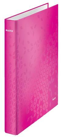 Gyűrűs könyv, 2 gyűrű, D alakú, 40 mm, A4 Maxi, karton, LEITZ "Wow", rózsaszín - E42410023 - Kétgyűrűs gyűrűskönyvek - - feltűnő megjelenésű gyűrűskönyv ragyogó élénk színekben - minőségi megjelenést kölcsönző fényes, laminált felület - erős karton alapan