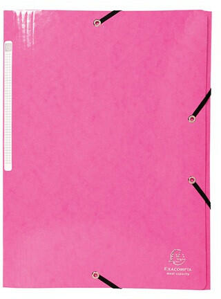 Gumis mappa karton Exacompta Iderama A/4 rózsaszín Méret: 24x32 cm (A/4 mérethez) Szín: rózsaszín Vastagság: 0,55 mm Alapanyag: 425 g/m2 karton Kapacitás: maximum 300 lap Prémium minőségű laminált kartonból készült, fényes felületű gumis mappa Környezetbarát, FSC minősítéssel rendelkezik