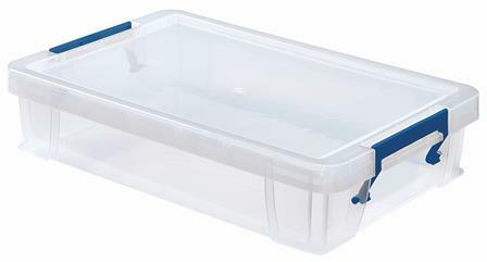 Tárolódoboz Műanyag Leemelhető, Zárható tető Portól, Nedvességtől védett 39,5 x 25,5 x 9 cm külméret 5,5 liter belső térfogat Élelmiszer tárolásra is alkalmas Átlátszó 1 db /csomag