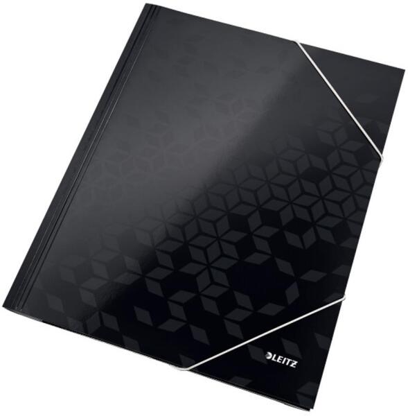 3 füleses A4-es mappa gumiszalaggal zárható, amely megbízhatóan védi a tárolt dokumentumokat a kiesés ellen. Hátlap 3 cm-ig.