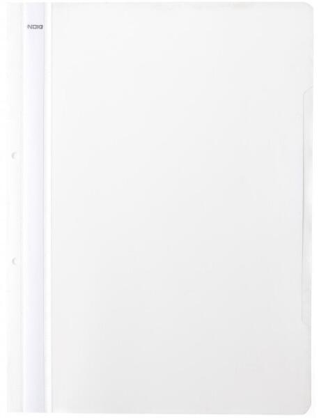 Műanyag reszelő sínnel és lyukakkal Noki, 50 db / készlet, fehér Reszelő műanyagból. Alonja beltéri iktatásra. 2 perforációval ellátva. Cserélhető címkezseb. Átlátszó előlap, matt hátlap. Formátum: A4.