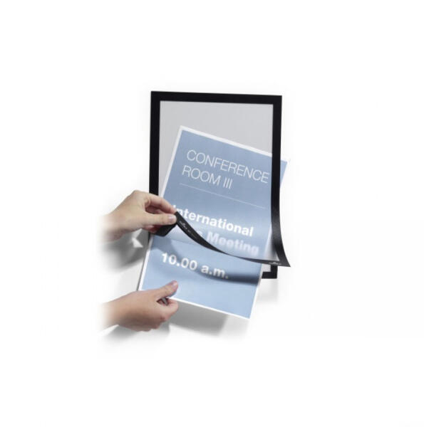 DURAFRAME® keret, öntapadó hátlappal és mágneses előlappal többféle méretben. A DURAFRAME® segítségével profin és kényelmesen helyezhetjük ki dokumentumainkat. Egyszerűen vegyük le a védőfóliát és ragasszuk fel az öntapadó keretet bármilyen sima, kemény felületre, például ablakra, iratszekrényre vagy ajtóra. A DURAFRAME® könnyedén áthelyezhető például üveg