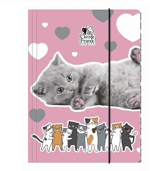 Cleo & Frank cicás gumis mappa A4-es - Friends Mappa lányoknak A rószaszín mappán cicák ölelkeznek össze. A mappa maximum A4-es méretű lapok tárolására alkalmas. A kemény karton anyagú mappa megvédi a dokumentumokat a külső behatásoktól, nem gyűrődik meg, nem szakad el. A mappa fedele gumipánttal rögzíthető. Méret: A4 Minta: cicás Gyártó: BackUp Anyag: papír Még
