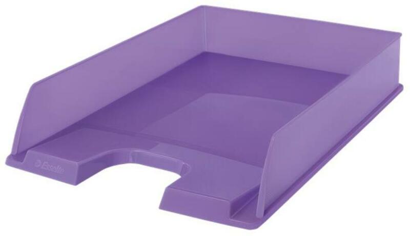 Irattálca, műanyag, ESSELTE Colour`Breeze, levendula (E628454) - modern formatervezésű irattálca divatos, áttetsző színekben - a tálcák egymásra helyezhetők függőlegesen vagy lépcsőzetesen, 3 pozícióban - könnyű hozzáférés az iratokhoz a nagy tálcakivágásnak köszönhetően - a tálca felemelkedő eleje megakadályozza a dokumentumok kicsúszását - feliratozási lehető