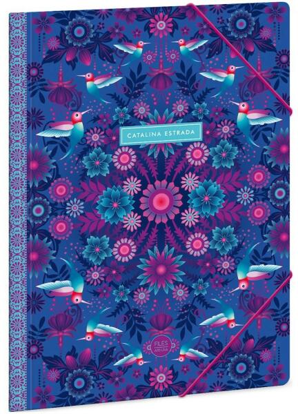 Vidám, virágos grafikájával díszített A/4 méretű gumis dosszié iratok, füzetek tárolására. 350 gr-os vastag kartonból, színes gumi zárópánttal. Méret: A/4-es (240x330 mm) Anyaga: 350 gr-os, vastag karton