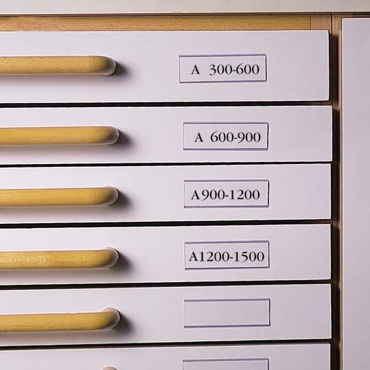 A címketartó zsebekkel iratrendezőket, gyűrűskönyveket és iratfiókokat jelölhetünk meg. A címkezseb a munkakörnyezethez alkalmazkodva, tartósabb anyagból készül, és a kívánt méretre vágható.
