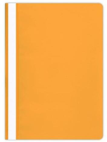 Klasszikus PP gyorsfűző dokumentumok nyilvántartásához átlátszó, narancsos fedlappal, színes hátlappal, kivehető, kétoldalas, feliratozható oldalcsíkkal.
