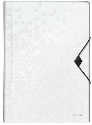 Harmonikamappa, A4, PP, 6 rekeszes, LEITZ "Wow", fehér - kiváló minőségű PP harmonika irattartó stílusos, élénk WOW színekben - ideális projekt dokumentumok rendszerezéséhez, tárolásához - 6 kihajtható rekesz jelölőcímkékkel a tartalom könnyű azonosításához - elülső rekesz a különálló lapok, füzetek tárolására - tetszetős gumis záródás a dokumentumok bizton