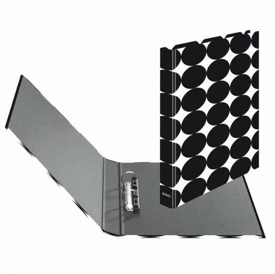 Közkedvelt iratrendező. Kívül műanyag, belül papírborítású. 7,5 cm-es gerinc. A gerincre hegesztett címketaró 195 mm hosszú. A cserélhető címke egyszínnyomott. Kihúzógyűrűvel ellátva. Az iratrendező záródását az elején elhelyezett 2 db acélgyűrű biztosítja. Az iratok lefűzése karos, kétkapcsos szerkezettel, fém leszorítóval történik.